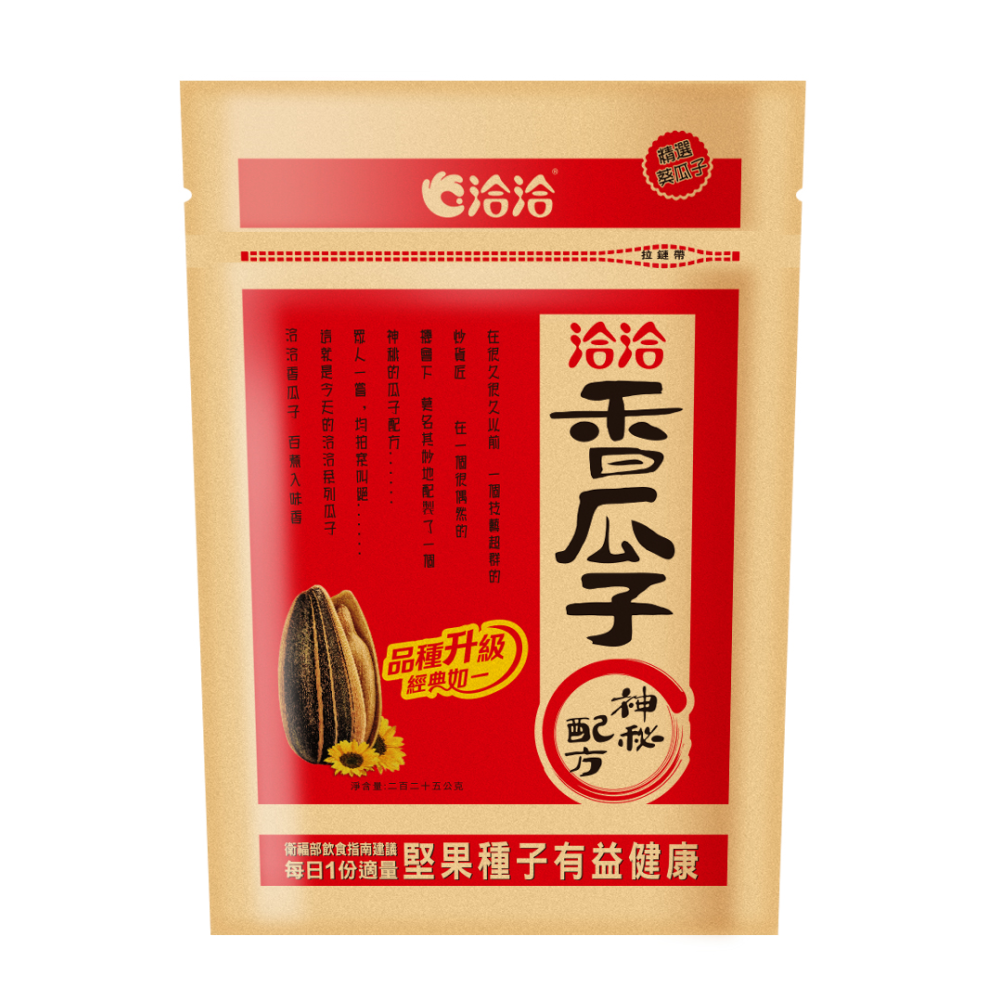 百煮入味,洽洽好味道,擷取飽滿清香的陽光果實瓜子,獨特調製的神秘配方,以細火燉煮24小時,每一顆都吃得到健康的好滋味,口口香,粒粒讚。